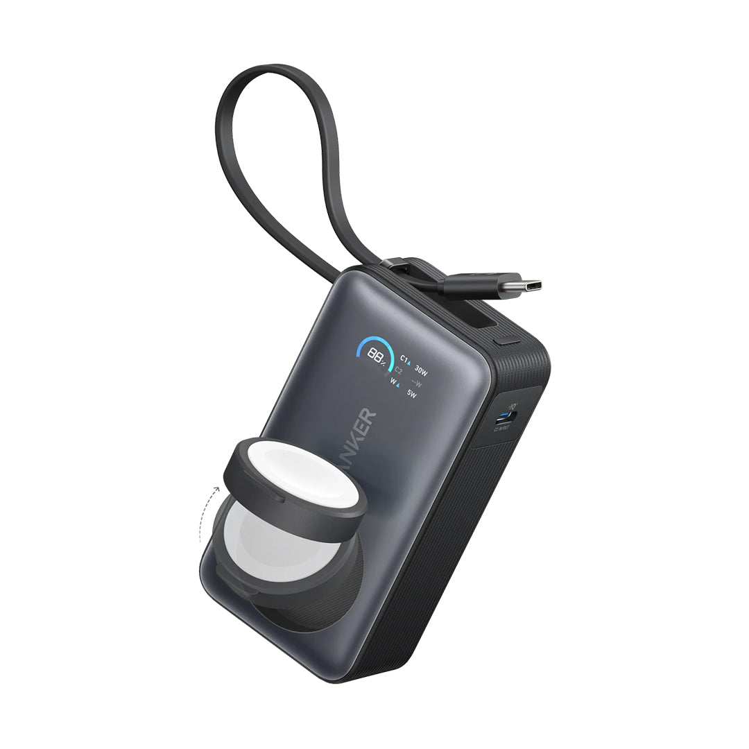 Anker MagGo Power Bank 10,000mAh 35W with Certified Apple Watch Charger & Built-In USB-C Cable – Black