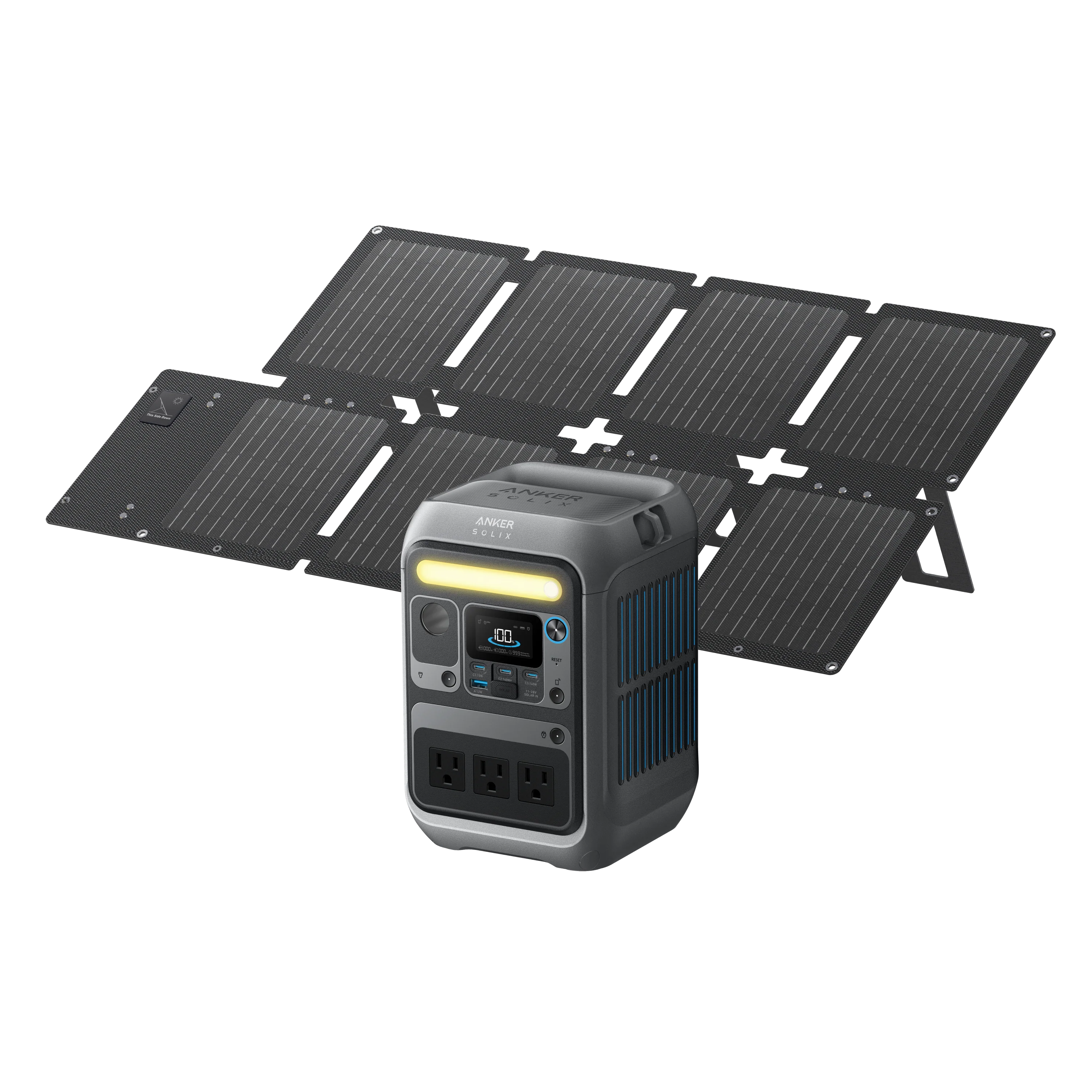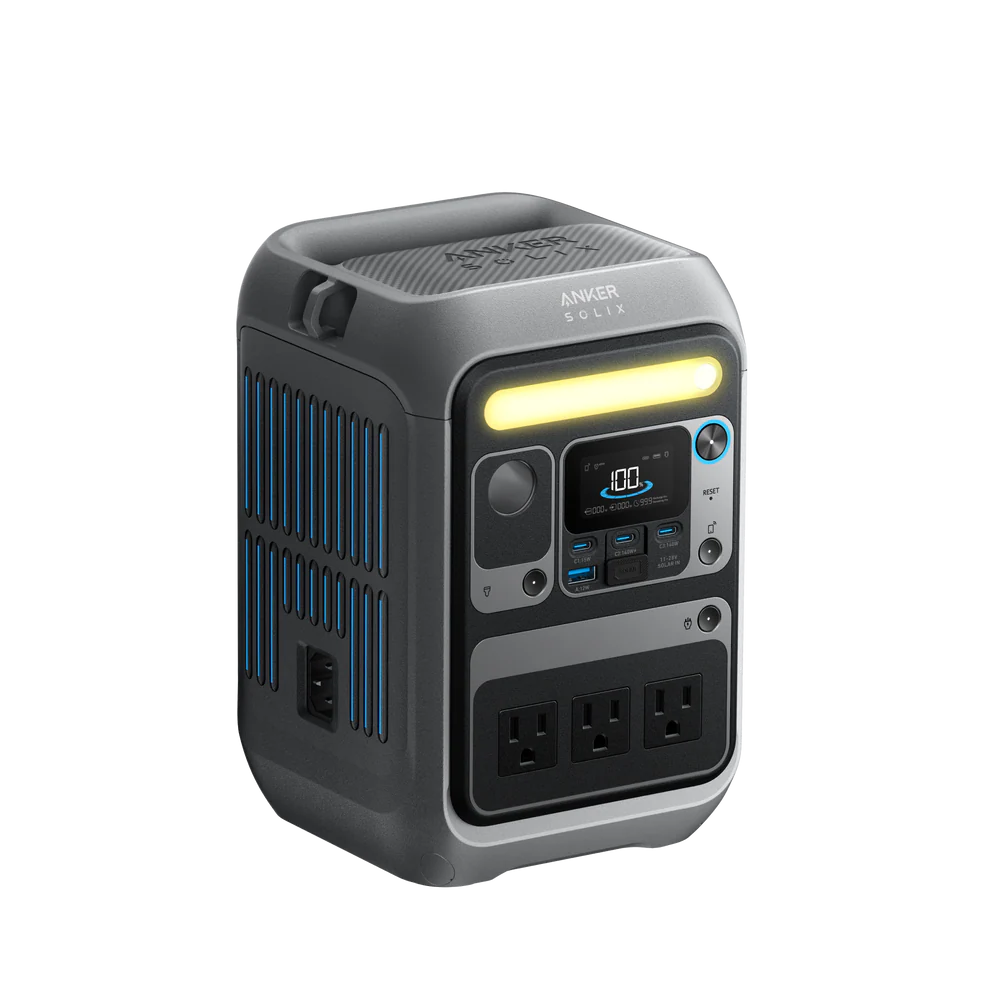 The Anker SOLIX C300 Portable Power Station (Dark Gray) is a compact and lightweight portable power solution featuring a 288Wh LiFePO₄ battery and 300W continuous output. Ideal for camping, travel, outdoor work, and emergency backup, it delivers reliable, quiet power with multiple charging ports and fast recharge capability.