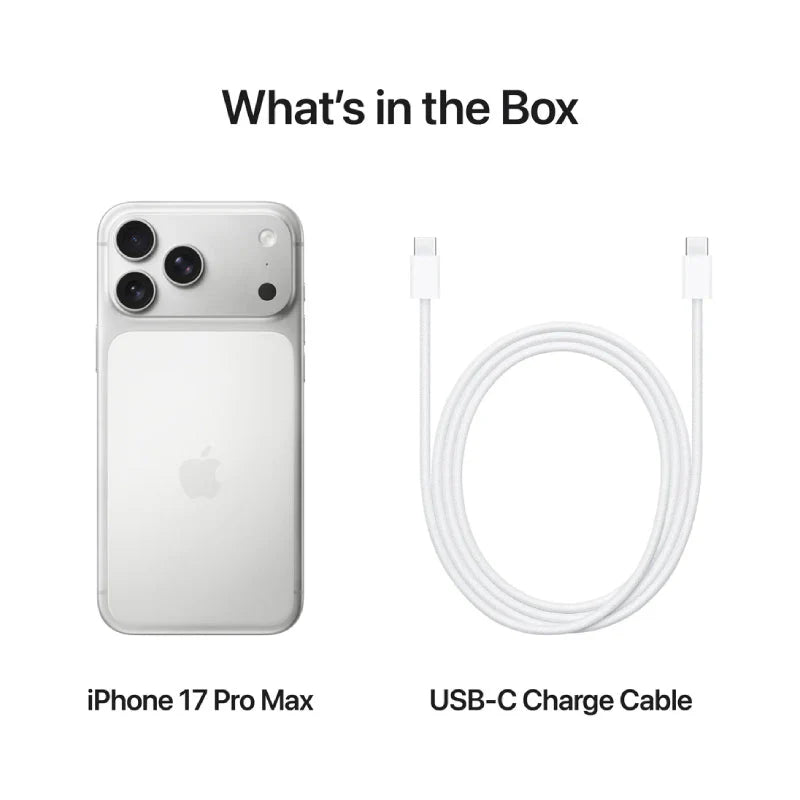 iPhone 17 Pro Max, USB-C charge cable (1 m), Documentation