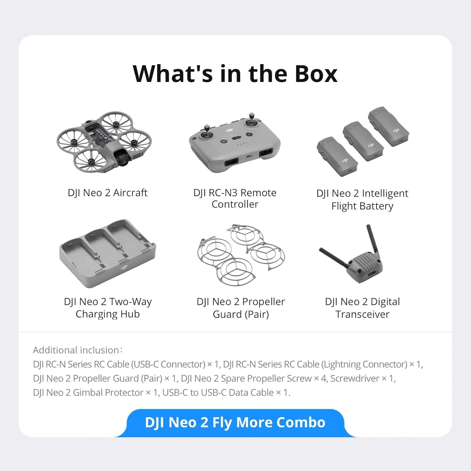 The DJI Neo 2 Fly More Combo is a versatile and high-performance consumer drone featuring a 1/2-inch 12 MP camera capable of stunning 4K video, advanced stabilization, omnidirectional sensing, and reliable long-range transmission — perfect for creators who want professional-level aerial footage and smart tracking in a compact package.