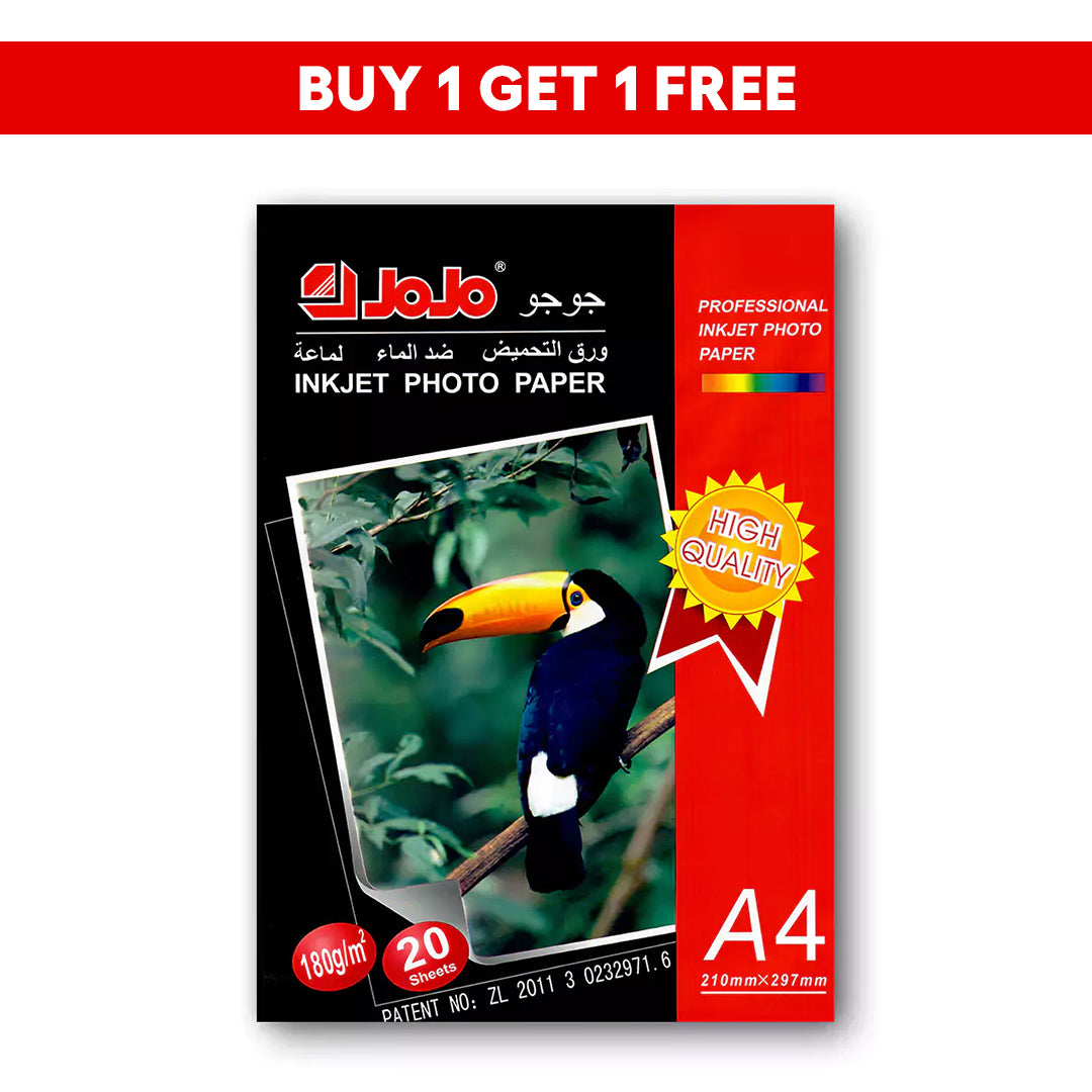The JOJO Professional Inkjet Photo Paper is a high-quality, glossy photo paper designed for professional-grade printing results at home, in offices, or for creative projects. Manufactured using premium bone paper, this 180GSM photo paper offers exceptional image clarity, vibrant color reproduction, and fast drying performance. Each pack includes 20 A4-sized sheets, making it ideal for photo printing, presentations, portfolios, graphic design work, and marketing materials.