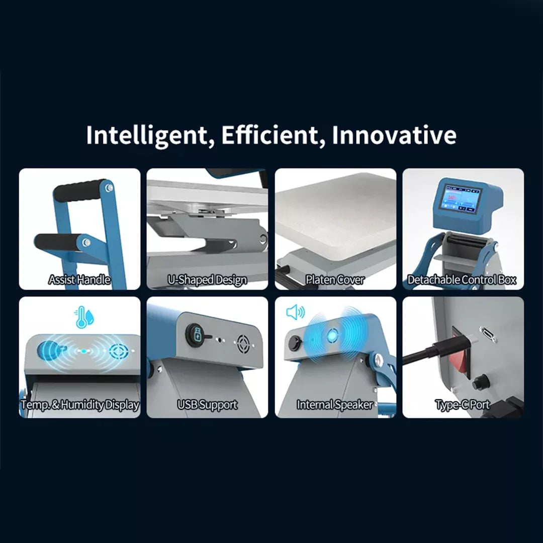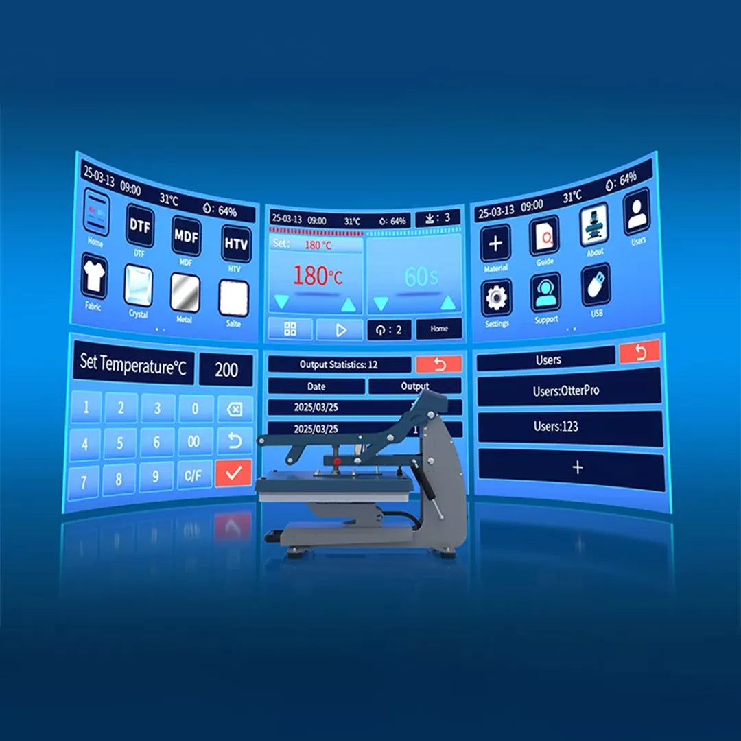 The Otter Ultra Heat Press G1 (16" x 20" / 40 x 50 cm, Marine Blue) is a premium-grade professional heat press machine designed for high-precision, heavy-duty use. Engineered with advanced technology and a sleek, durable design, it delivers consistent heat and pressure, making it ideal for sublimation, heat transfer vinyl (HTV), and a wide range of printing applications on fabrics, ceramics, and more. The user-friendly 5-inch capacitive touch screen allows easy control of temperature, time, and pressure, ensuring every press is perfect and efficient. Built for durability and performance, the Otter Ultra G1 is a reliable choice for professionals and businesses that demand quality and precision.