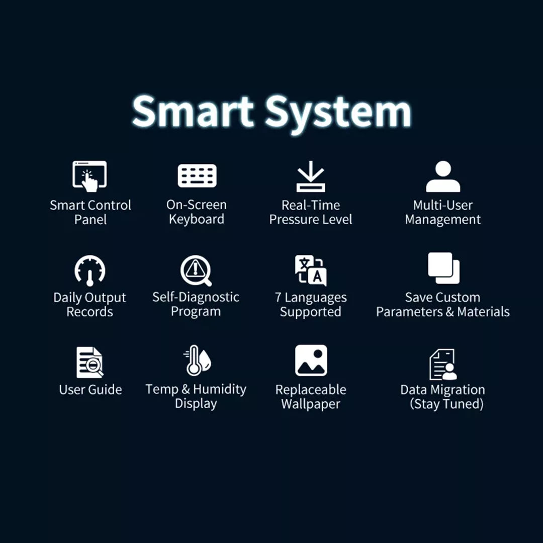 • Smart Control System – 5-inch capacitive touchscreen for easy time, temperature, and pressure settings.