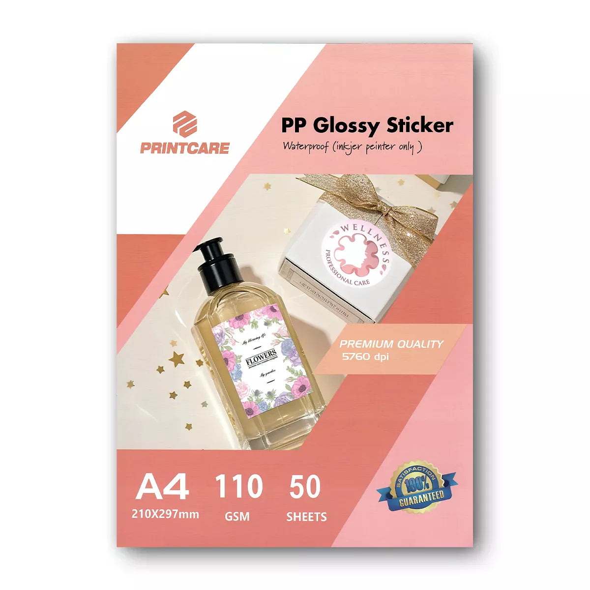 PrintCare PP Glossy Sticker Paper is the perfect choice for professional-quality labels, branding, packaging stickers, craft projects, and product tags. Designed with a premium glossy polypropylene surface, it delivers rich colors, crisp detail, and a smooth high-shine finish. This sticker paper is fully waterproof, ensuring your prints stay vibrant and intact even when exposed to moisture—making it ideal for cosmetic bottles, food containers, gift boxes, and handmade product labeling.