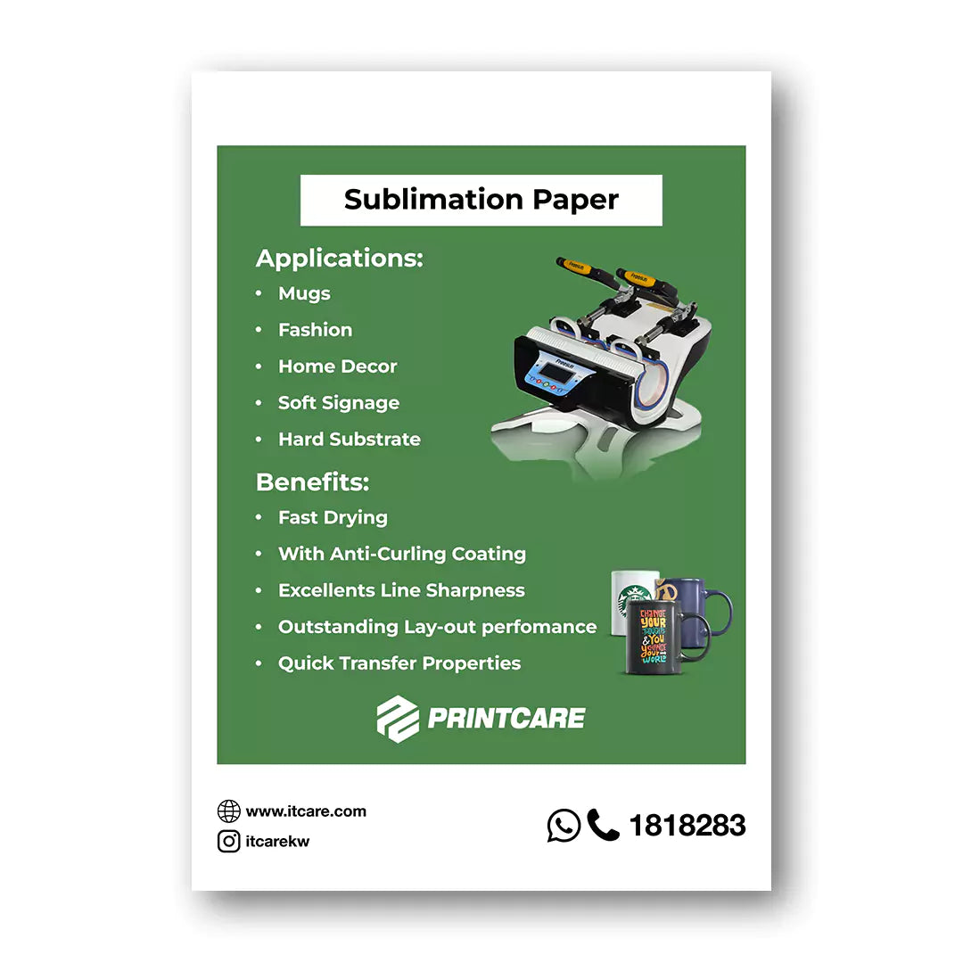 طباعة ورق نقل التسامي للعناية بالطباعة - A4/ 120 جم/ 100 ورقة - PC-SUBA4-1