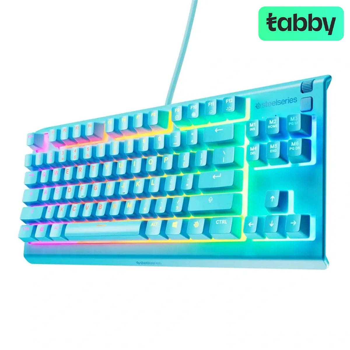 The SteelSeries Apex 3 TKL RGB Gaming Keyboard in Aqua is a compact tenkeyless (TKL) gaming keyboard with whisper-quiet gaming switches, vibrant RGB lighting, and durable construction. Designed for gamers who want reliable performance and customizable lighting in a space-saving form factor.