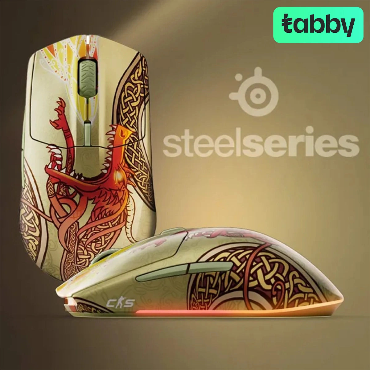The SteelSeries Wireless Gaming Mouse CS2 Dragon Lore Edition is a lightweight, right-handed gaming mouse designed for precision and speed. It features the TrueMove Air optical sensor with up to 18,000 CPI, zero hardware acceleration, and fast 1 ms wireless performance. With durable 80-million-click mechanical switches, dual wireless connectivity (2.4GHz and Bluetooth), up to 200 hours of battery life, and customizable RGB lighting, it delivers reliable performance and striking design for competitive gaming across PC, Mac, and console platforms.